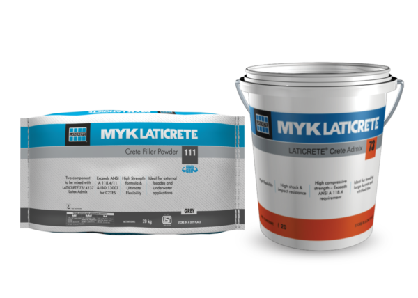 LATICRETE® 111 Crete Filler Powder is a factory prepared blend of carefully selected raw materials, portland cement and graded aggregates. Designed for use with LATICRETE® 73 Crete Admix to produce high strength adhesive for fixing all varieties of small to large format tiles and stones.